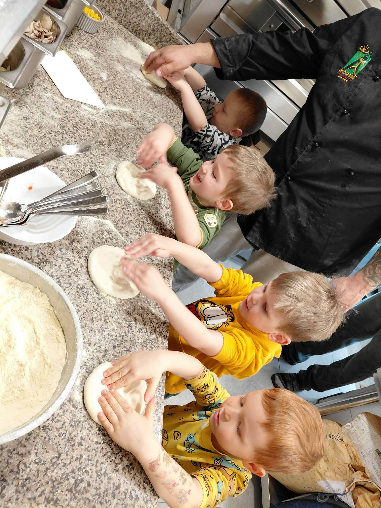Dowiedziały się z czego zrobienie jest prawdziwe włoskie ciasto do pizzy, a potem samodzielnie przygotowali swoje własne pizzę.